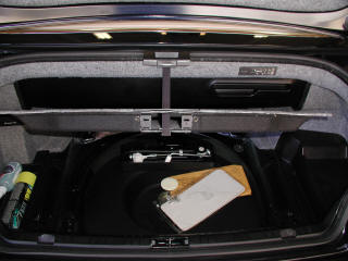 trunk, at the right rear of the car under the black battery cover. First, lift