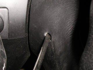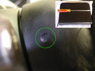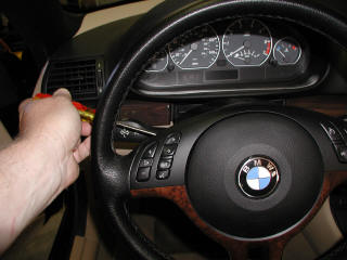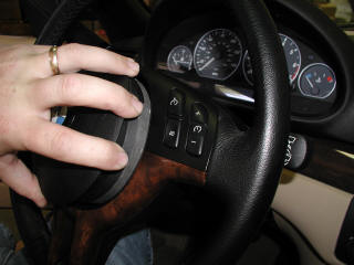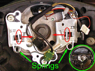 holding the spring compressed, grab the edge of the airbag/horn unit with your