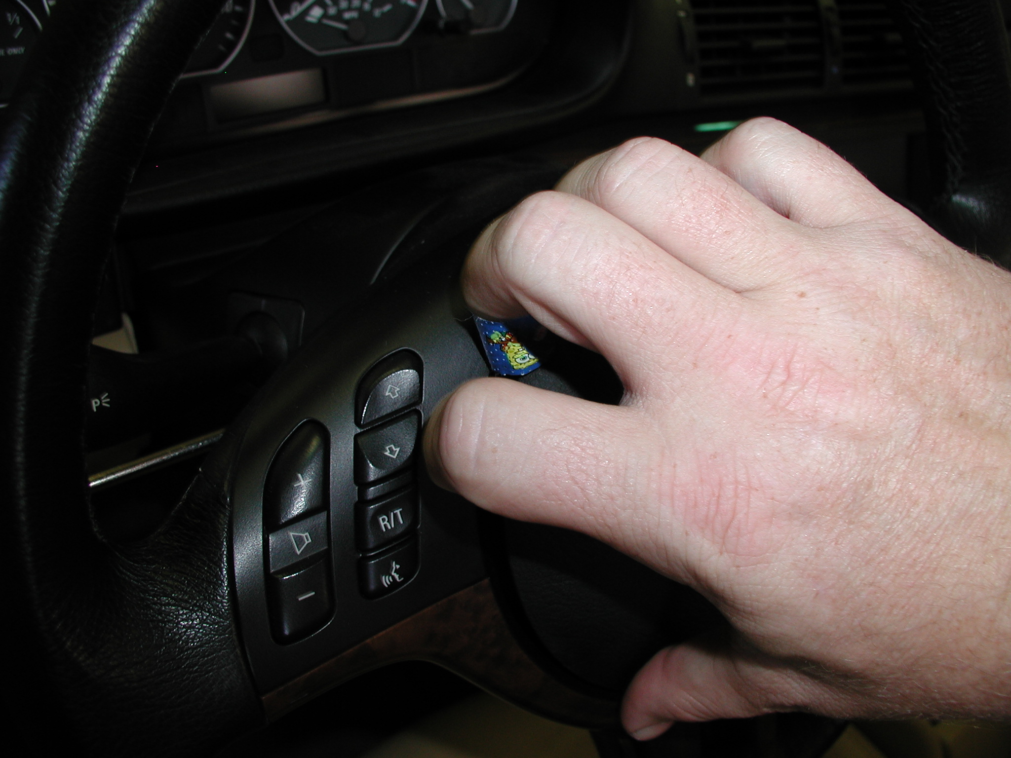 On the side of the steering wheel at approximately the 10 and 2 o'clock