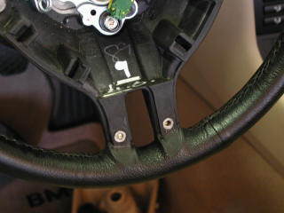 spokes of the steering wheel via the holes in the back of the spokes. These are