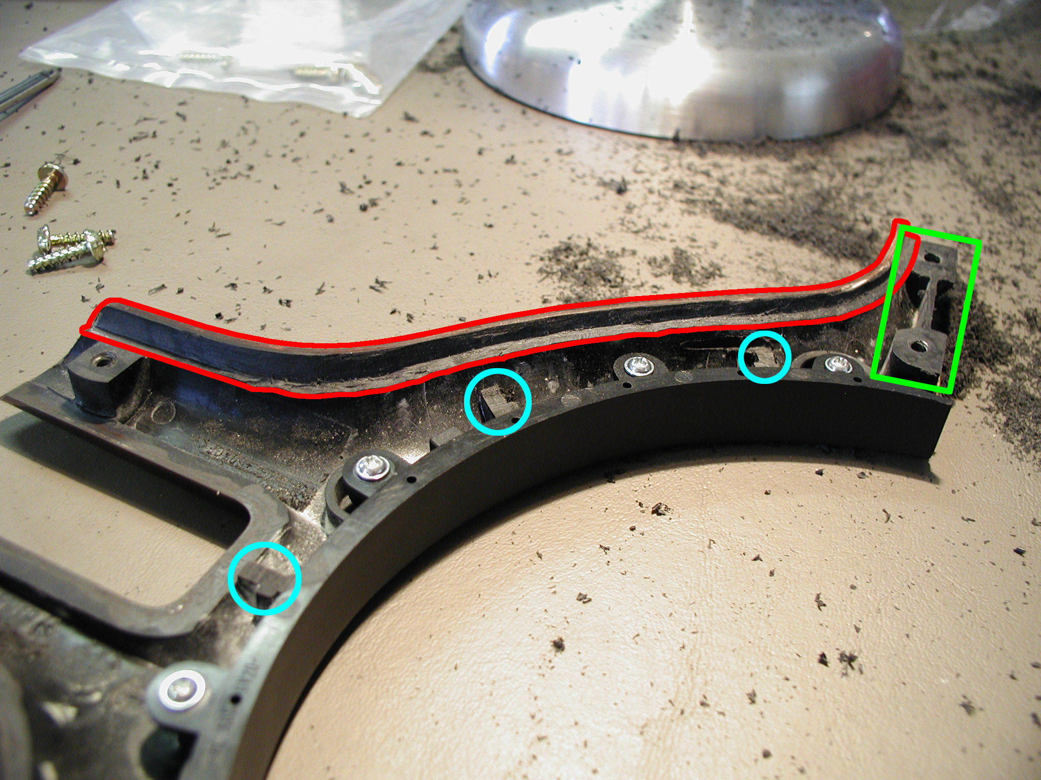 - The screw locations for joining the two trim halves need to be shaved