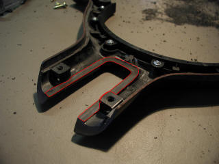 where it meets the steering wheel on the left and right sides. You will have to shave this down a little bit, test join the pieces,