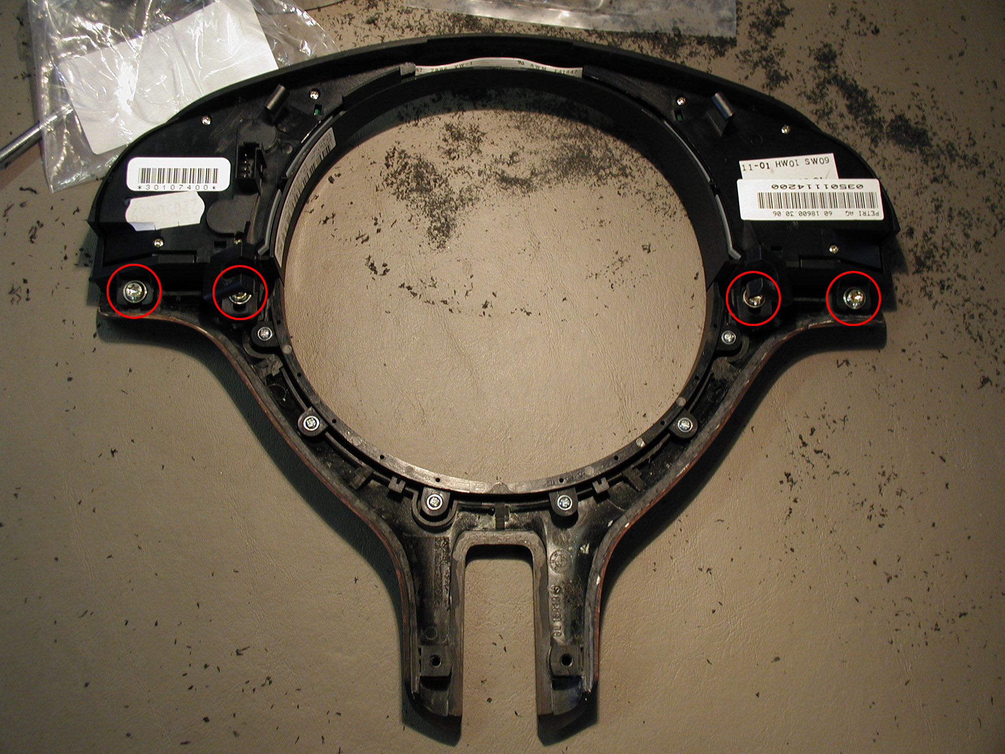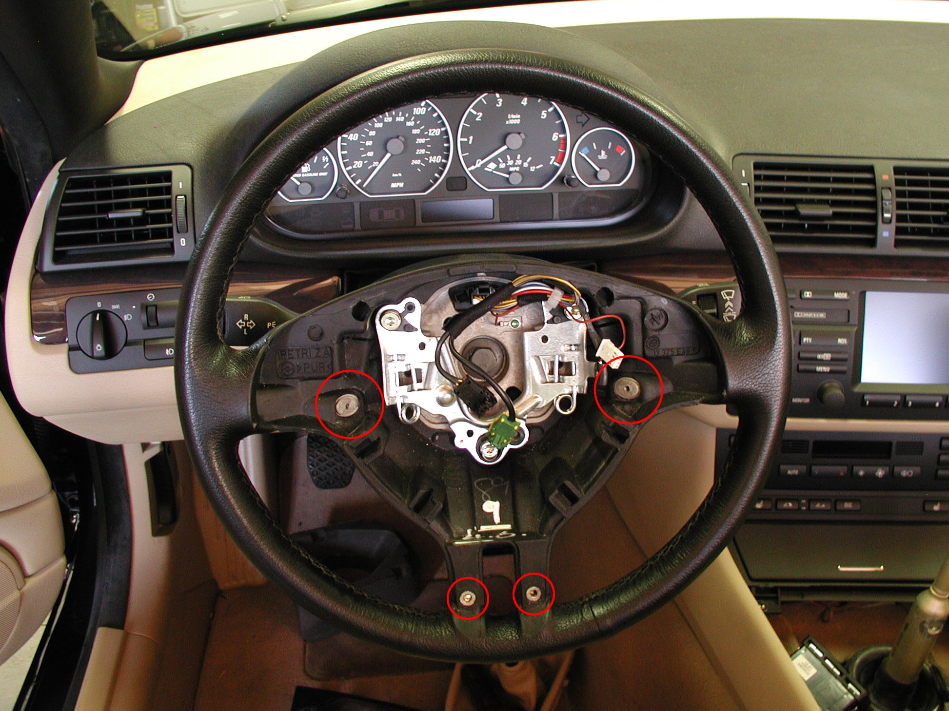 steering wheel, or clear the plastic frame for two of the 4 screws holding the